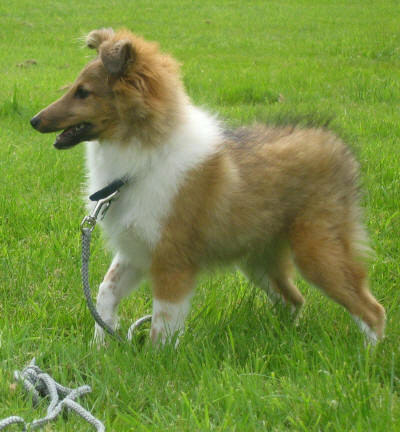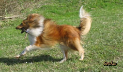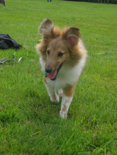 Le 13 Mai 2008 : Nous avons profité d'un long Week end du 8er Mai pour faire une randonnée shetland, où j'ai pu revoir mon petit Corwin. C'est un chien très joyeux dans sa tête, une vraie pile électrique, joueur, super sociable, calin, intelligent, .... Quel bonheur de le revoir aussi en forme et heureux dans sa famille.