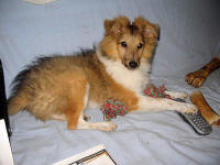 arrivé chez nous le 27 avril 2007, c'est un amour de sheltie. Normal,